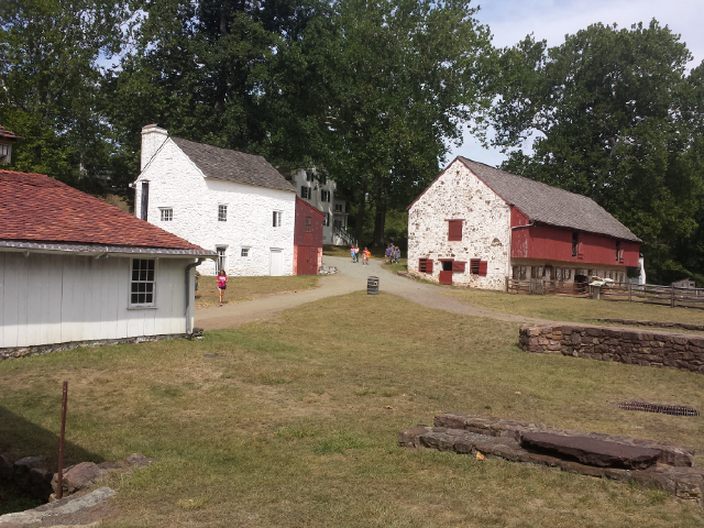 Der nächste Stop auf der vom Reiseführer vorgeschlagenen Route war die Hopewell Furnace National Historic Site. Was erst nur wie ein Parkplatz mit angeschlossenem Souvenir-Shop aussah, entpuppte sich als eine der interessantesten Orte dieses Tages. Hinter dem Info-Zentrum versteckt lagen nämlich fast ein Dutzend sehr gut in Stand gehaltene Gebäude einer alten Eisenverarbeitungsstätte – von einem Hochofen über das Haus der Besitzer bis hin zu Häusern der Arbeiter ist noch vieles auf dem Stand des frühen 19. Jahrhunderts, alles liebevoll eingerichtet und zum betreten einladend. Am Wochenende laufen wohl kostümierte Arbeiter und Bauersfrauen auf dem Gelände herum; das sich noch drehende Mühlrad in Kombination mit den „Achtung heiß“-Schildern lässt sogar erahnen, dass hier manchmal noch Eisen geschmolzen und gegossen wird. Leider war mein Besuch am Labor Day an einem Montag, sodass ich ohne Bespaßung auskommen musste, doch das großartige Ambiente war schon spannend genug.